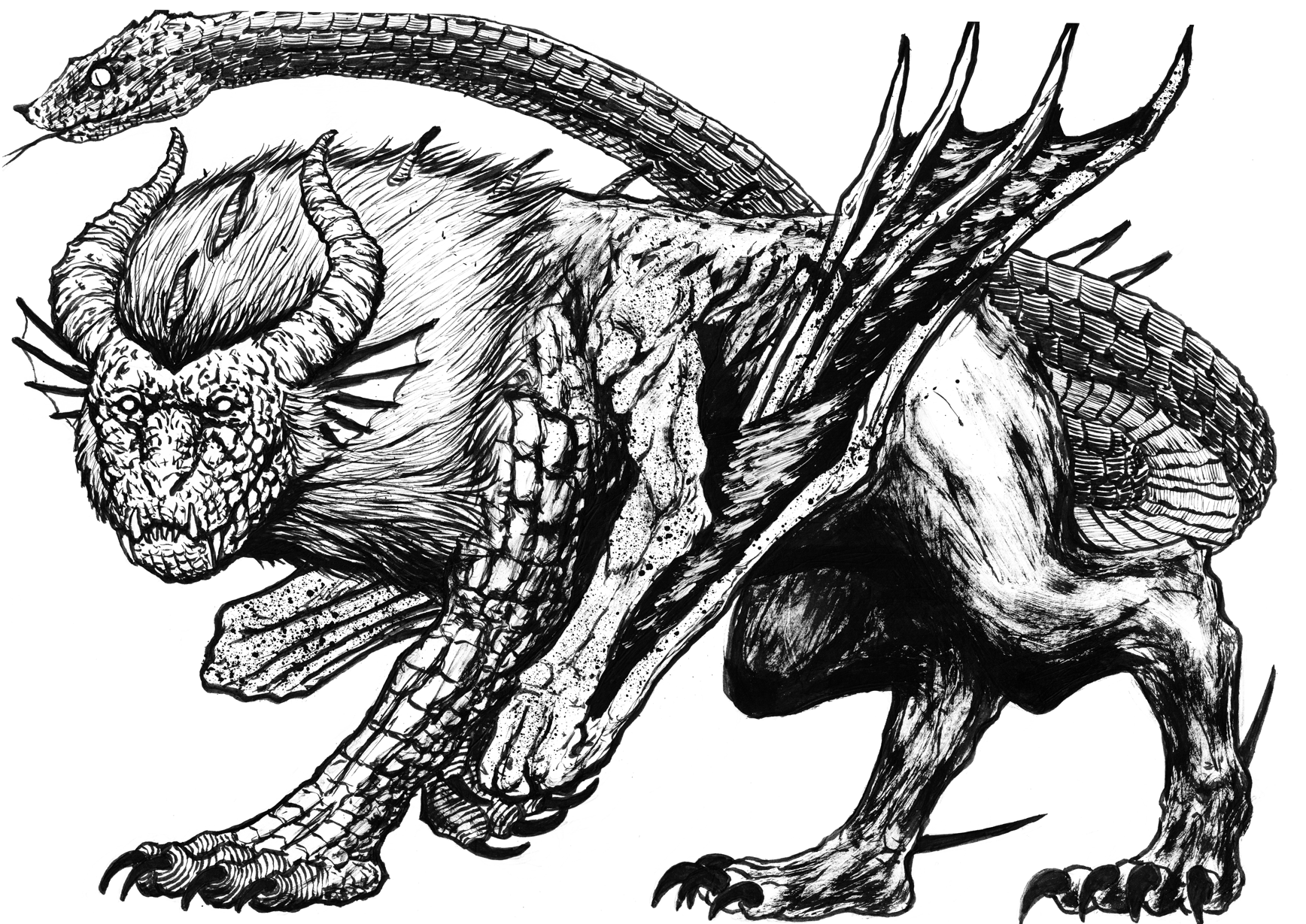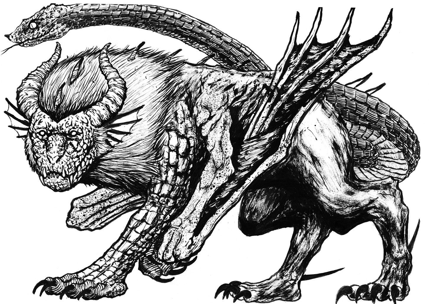 Cool creature in the illustration, is that a chimera? Who's the artist? love that line work!